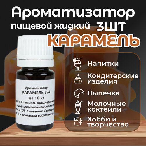 Ароматизатор пищевой Карамель 3 шт по 10 мл для кондитерских изделий десертов выпечки напитков и детского творчества