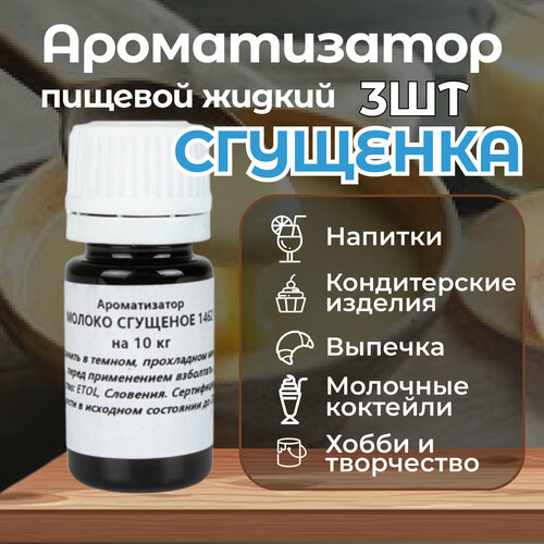 Ароматизатор пищевой Сгущенка 3шт по 10мл для кондитерских изделий десертов выпечки напитков и детского творчества