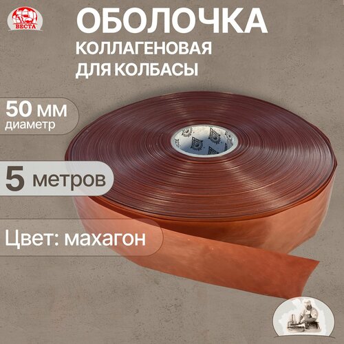 Коллагеновая Оболочка для Колбасы 50 мм, Цвет Махагон, 5 метров