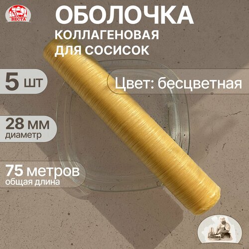 Коллагеновая Оболочка для Сосисок (28 мм / 75 метров) Бесцветная, 5 шт