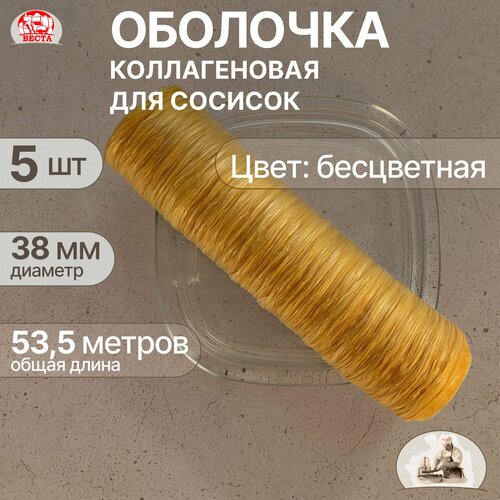 Коллагеновая Оболочка для Сосисок (38 мм / 53,5 метров) Бесцветная, 5 шт