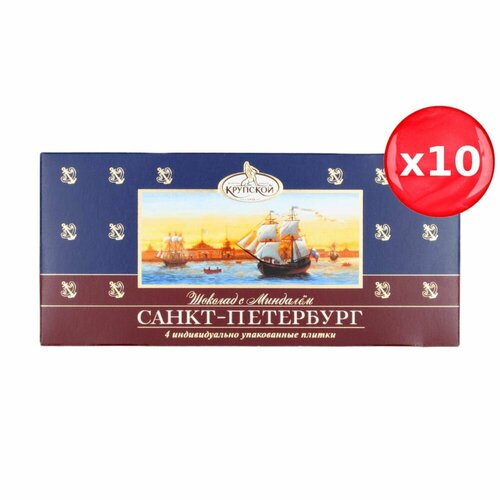 Шоколад Санкт-Петербург темный с миндалем 100 г, набор из 10 шт.