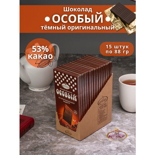 Шоколад порционный особый темный оригинальный 53% какао , 15 шт по 88 гр, Крупская
