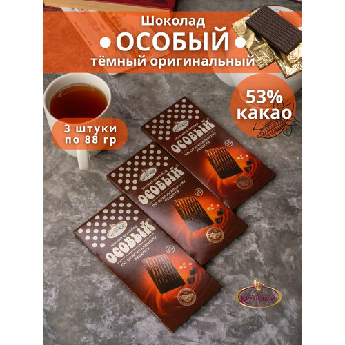 Шоколад порционный особый темный оригинальный 53% какао , 3 шт по 88 гр, Крупская