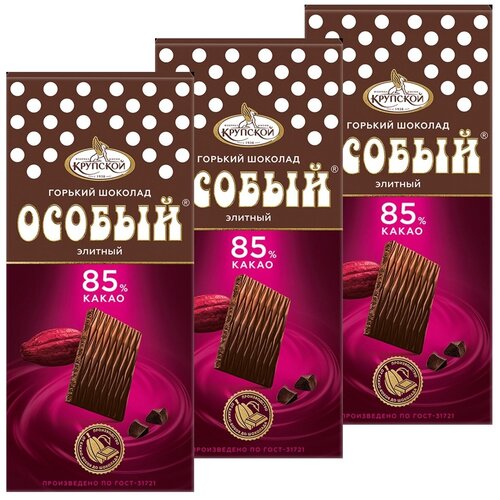 Шоколад Особый темный оригинальный 85% какао, набор из 3 шт