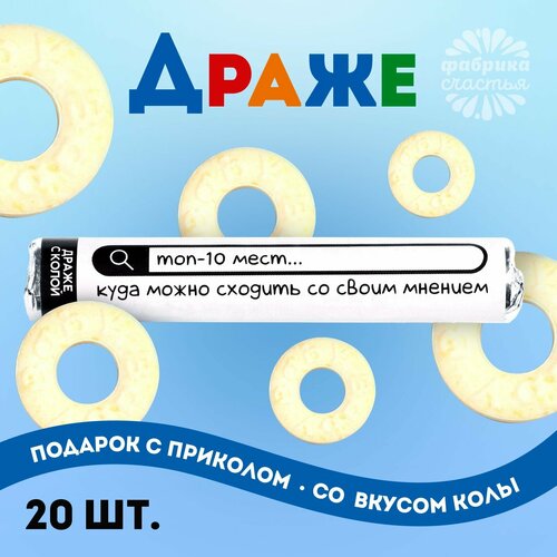Драже колечки «Топ-10 мест, куда можно сходить со своим мнением» в тубусе, вкус: кола, 25 г. 1шт.