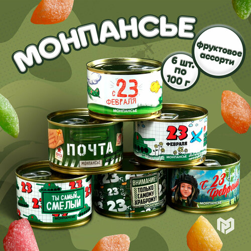 Подарочный набор леденцов 6 шт "С 23 февраля" в жестяной банке, ассорти вкусов