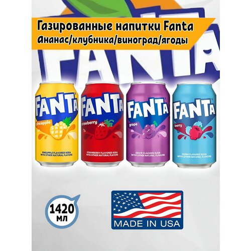 Газированный напиток Fanta Grape, Berry, Pineapple, Strawberry, 4 шт. по 355мл США фанта