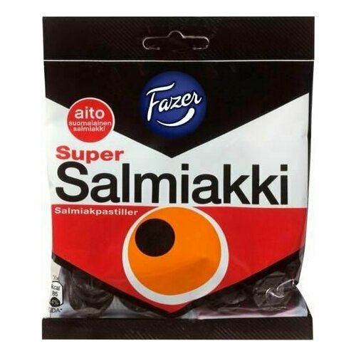 Fazer жевательные конфеты Super Salmiakki с лакрицей и салмиакки, 80 г (из Финляндии)