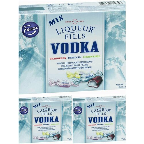 Конфеты Fazer "Liqueur Fills Vodka" из темного шоколада с алкогольной начинкой, 3уп по 150г (Из Финляндии)