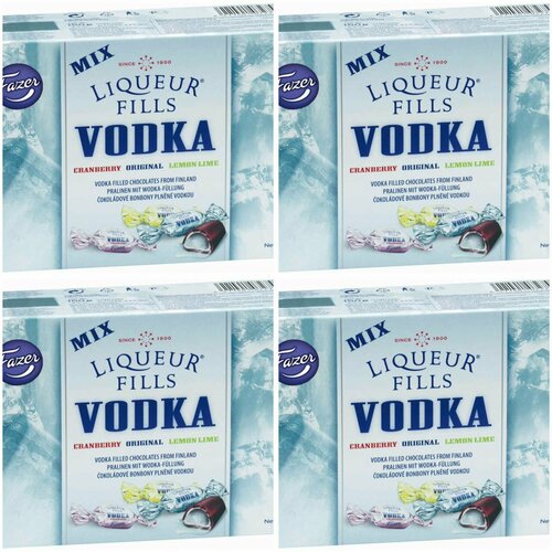 Конфеты Fazer "Liqueur Fills Vodka" из темного шоколада с алкогольной начинкой, 4уп по 150г (Из Финляндии)