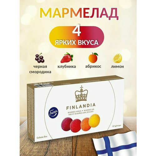 Конфеты фруктовый мармелад Финляндия четыре свежих вкуса абрикос, черная смородина, лимон и клубника, сладкий подарок на Новый год (Fazer Finlandia 260 гр)
