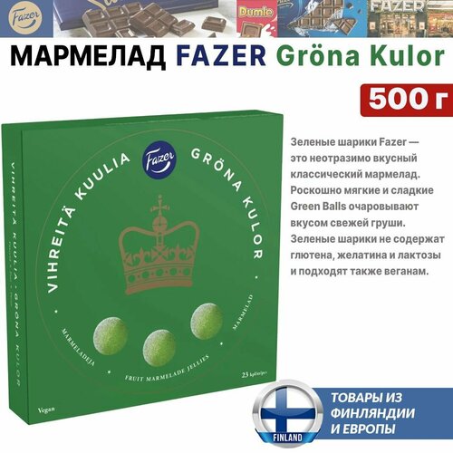 Финский мармелад Fazer Green Balls 500 г, мягкие и сладкие Grona Kulor очаровывают вкусом свежей груши, из Финляндии