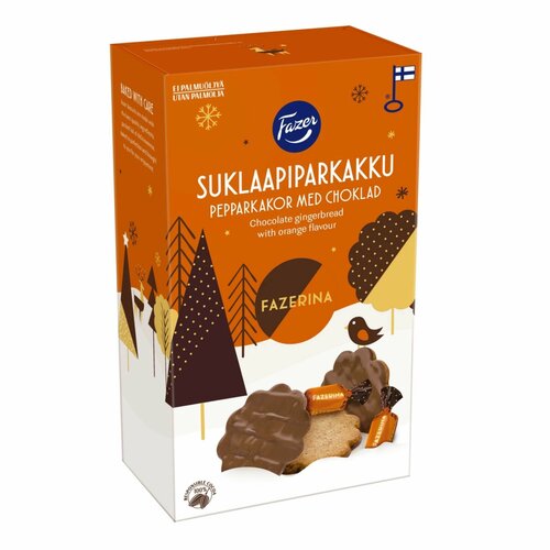 Печенье имбирное в шоколадной глазури со вкусом апельсина Fazer Chocolate Gingerbread, 175 г (Финляндия)