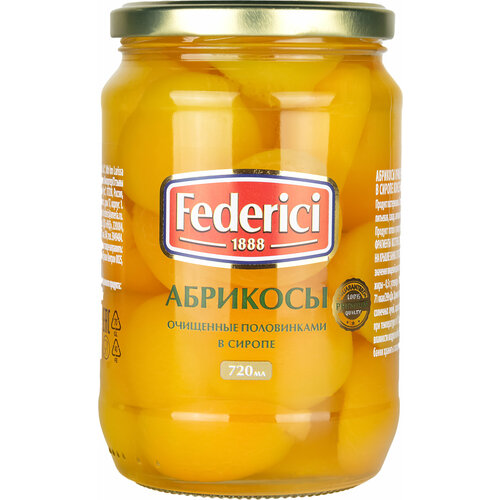 Абрикосы Federici очищенные половинками в сиропе, 680 г, 720 мл, 1 шт.