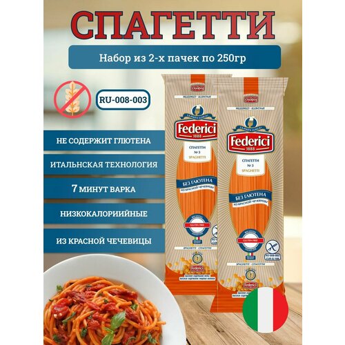 Макароны Federici Спагетти без глютена из красной чечевицы, 250 г