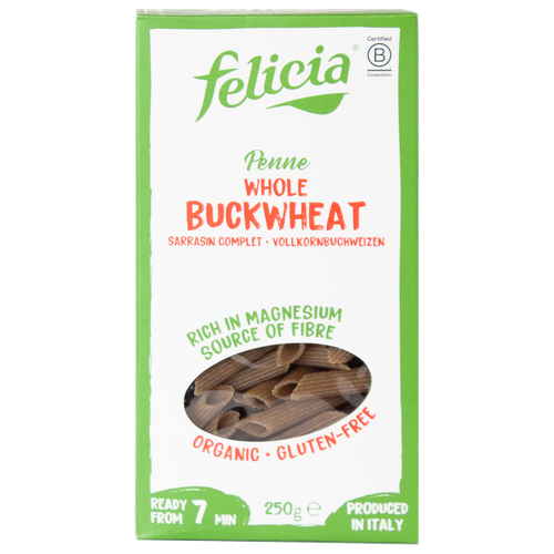 Макароны Felicia Penne buckwheat BIO Перья цельнозерновые из гречневой муки без глютена БИО, 250 г