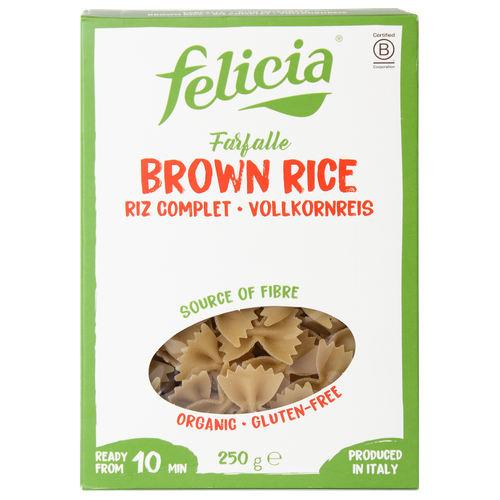 Макароны Felicia Farfalle brown rice BIO Бантики цельнозерновые из бурого риса без глютена БИО, 250 г