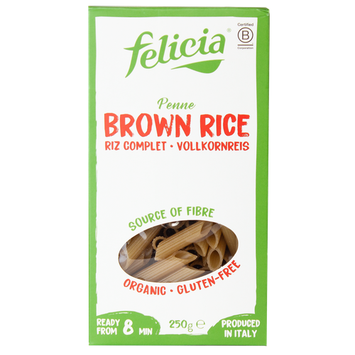 Макароны Felicia Penne brown rice BIO Перья цельнозерновые из бурого риса без глютена БИО, 250 г