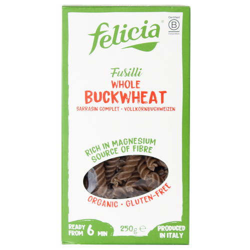 Макароны Felicia Fusilli buckwheat BIO Спиральки цельнозерновые из гречневой муки без глютена БИО, 250 г