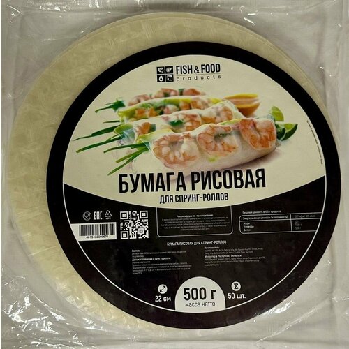 Бумага рисовая для спринг роллов 22 см, FISH&FOOD, Вьетнам, 500 г х 1шт