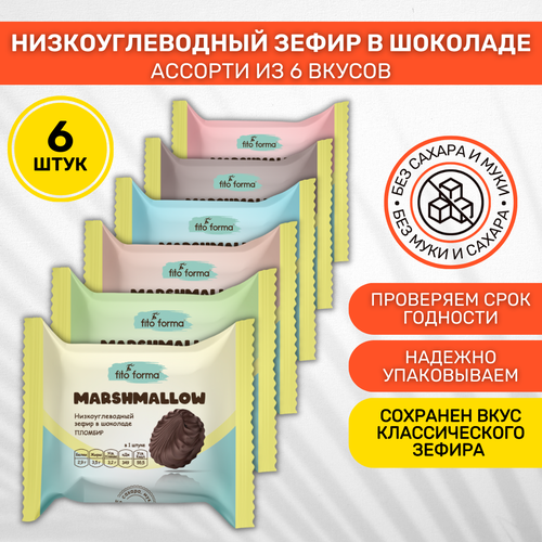 Зефир в шоколаде Marshmallow без сахара низкоуглеводный Fito forma Ассорти 6 шт по 40г