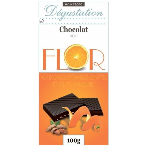 Шоколад FLOR темный с миндалем и апельсиновой цедрой, 8 шт