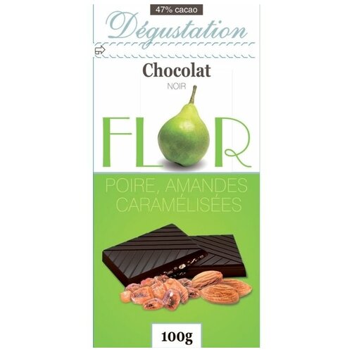 Шоколад FLOR темный с грушей и миндалем в карамели, 8 шт х 100 г