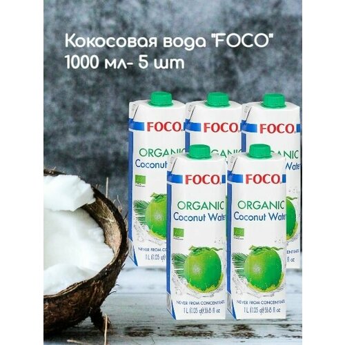 Органическая кокосовая вода "FOCO" без сахара, 5 штук по 1 л