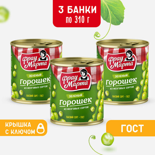 Горошек зеленый консервированный ГОСТ Фрау Марта 310 г, 3 шт