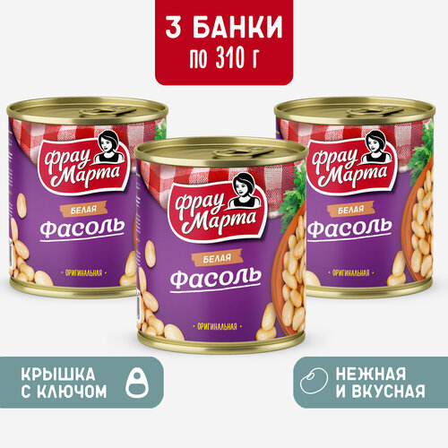 Фасоль консервированная белая в собственном соку Фрау Марта 310 г, 3 шт