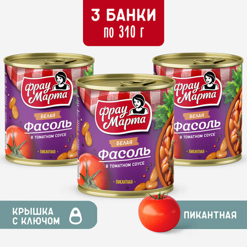 Фасоль консервированная белая в томатном соусе Фрау Марта 310 г, 3 шт