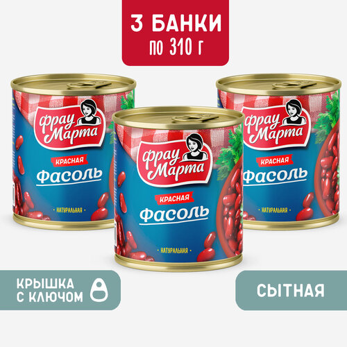 Фасоль консервированная красная в собственном соку Фрау Марта 310 г, 3 шт