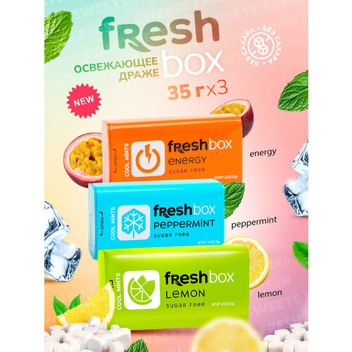 Освежающие драже Freshbox Ассорти без сахара, 35г (3х35г) Energy/мята/лимон
