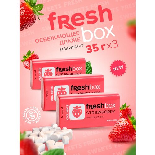 Освежающие драже Freshbox Клубника без сахара, 35г (3×35г)