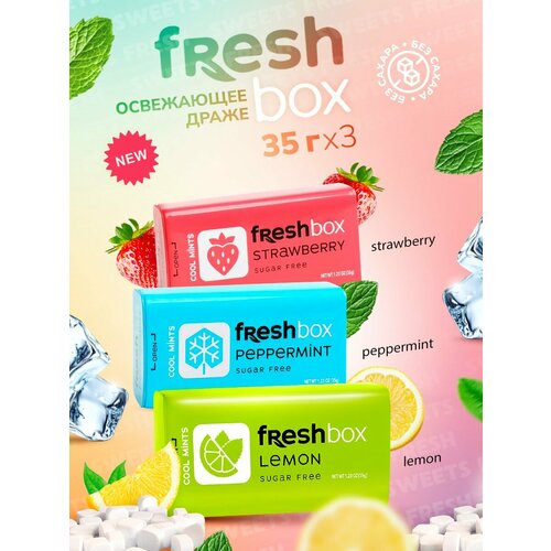 Освежающие драже Freshbox Ассорти без сахара, 35г (3х35г) Клубника/мята/лимон