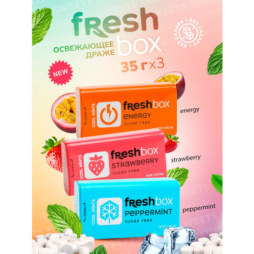 Освежающие драже Freshbox Ассорти без сахара, 35г (3х35г) Energy/клубника/мята