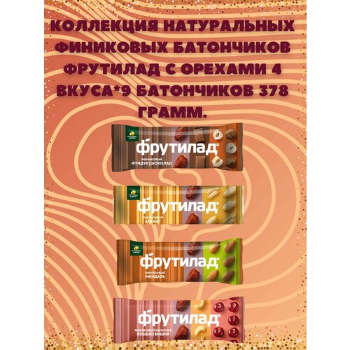 Коллекция натуральных финиковых батончиков Фрутилад с орехами 4 вкуса*9 батончиков 378 грамм.