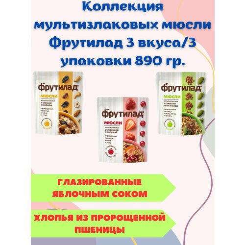 Коллекция мультизлаковых мюсли Фрутилад 3 вкуса/3 упаковки 890 гр.