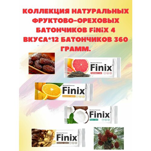 Коллекция натуральных фруктово-ореховых батончиков Finix 4 вкуса*12 батончиков 360 грамм.