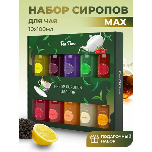 Подарочный набор сиропов FUN’N’JOYTea Time для чая, кофе, десертов, мороженного: мята лаванда брусника лимон черная смородина персик малина облепиха клубника жасмин: 10 шт. по 100 мл.