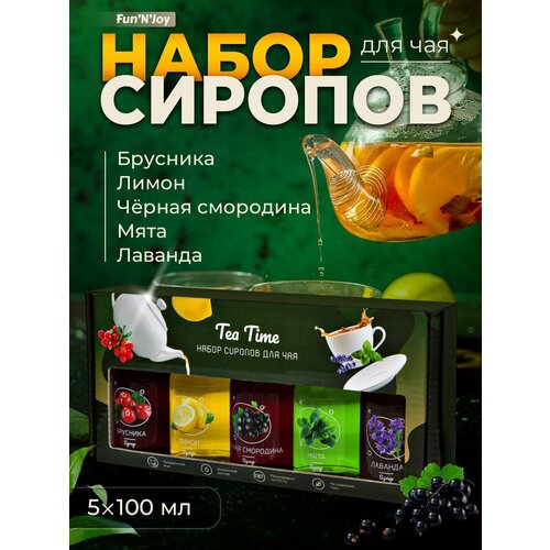 Подарочный набор сиропов FUN’N’JOY Tea Time брусника, лимон, черная смородина, мята, лаванда: 5 шт. по 100 мл.