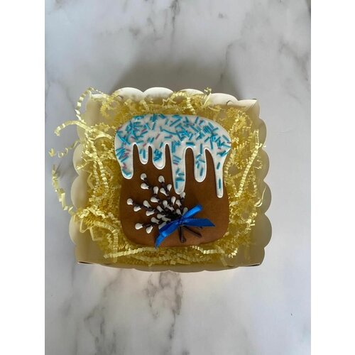 Подарочный имбирный пряник в коробке 1 шт. "Кулич с вербой" на Пасху от кондитерской Fёdor Kotoff