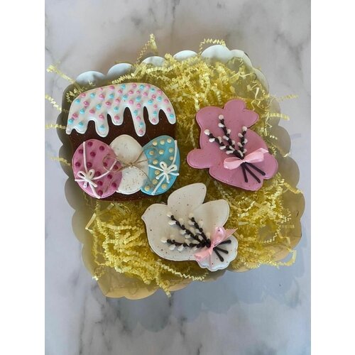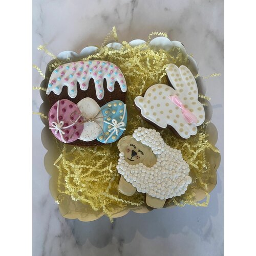 Подарочный набор имбирных пряников 3 шт. "Кулич, агнец и Зая" на Пасху от кондитерской Fёdor Kotoff
