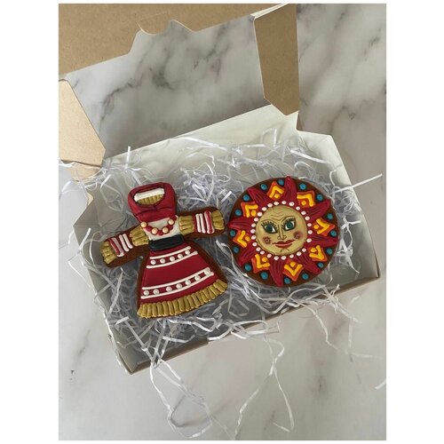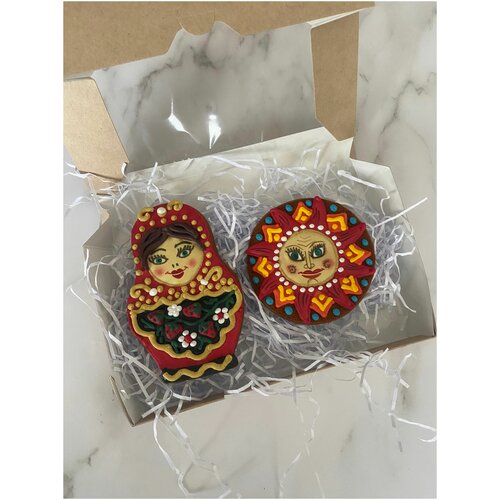 Подарочный набор имбирных пряников 2 шт. "Матрёшка и Ярило (солнце)" на Масленицу, Пасху от кондитерской Fёdor Kotoff