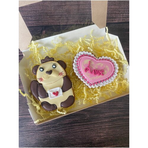 Подарочный набор имбирных пряников 2 шт. "Бобрёнок и сердце" на 14 февраля, день всех влюблённых, 8 марта от кондитерской Fёdor Kotoff
