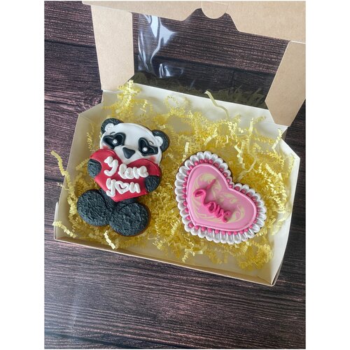 Подарочный набор имбирных пряников 2 шт. "Панда и сердце" на 14 февраля, день всех влюблённых, 8 марта от кондитерской Fёdor Kotoff