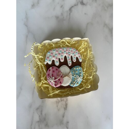 Подарочный имбирный пряник в коробке 1 шт. "Кулич" на Пасху от кондитерской Fёdor Kotoff