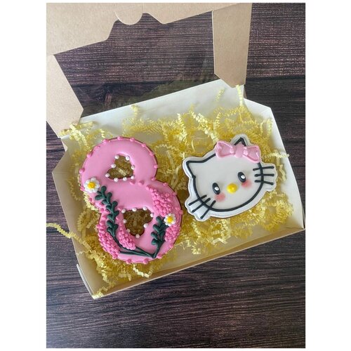 Подарочный набор имбирных пряников 2 шт. "Белая китти и розовая восьмёрка" на 8 марта от кондитерской Fёdor Kotoff