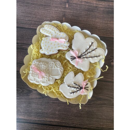 Подарочный набор имбирных пряников 4 шт. "Пасха белоснежная" на Пасху от кондитерской Fёdor Kotoff